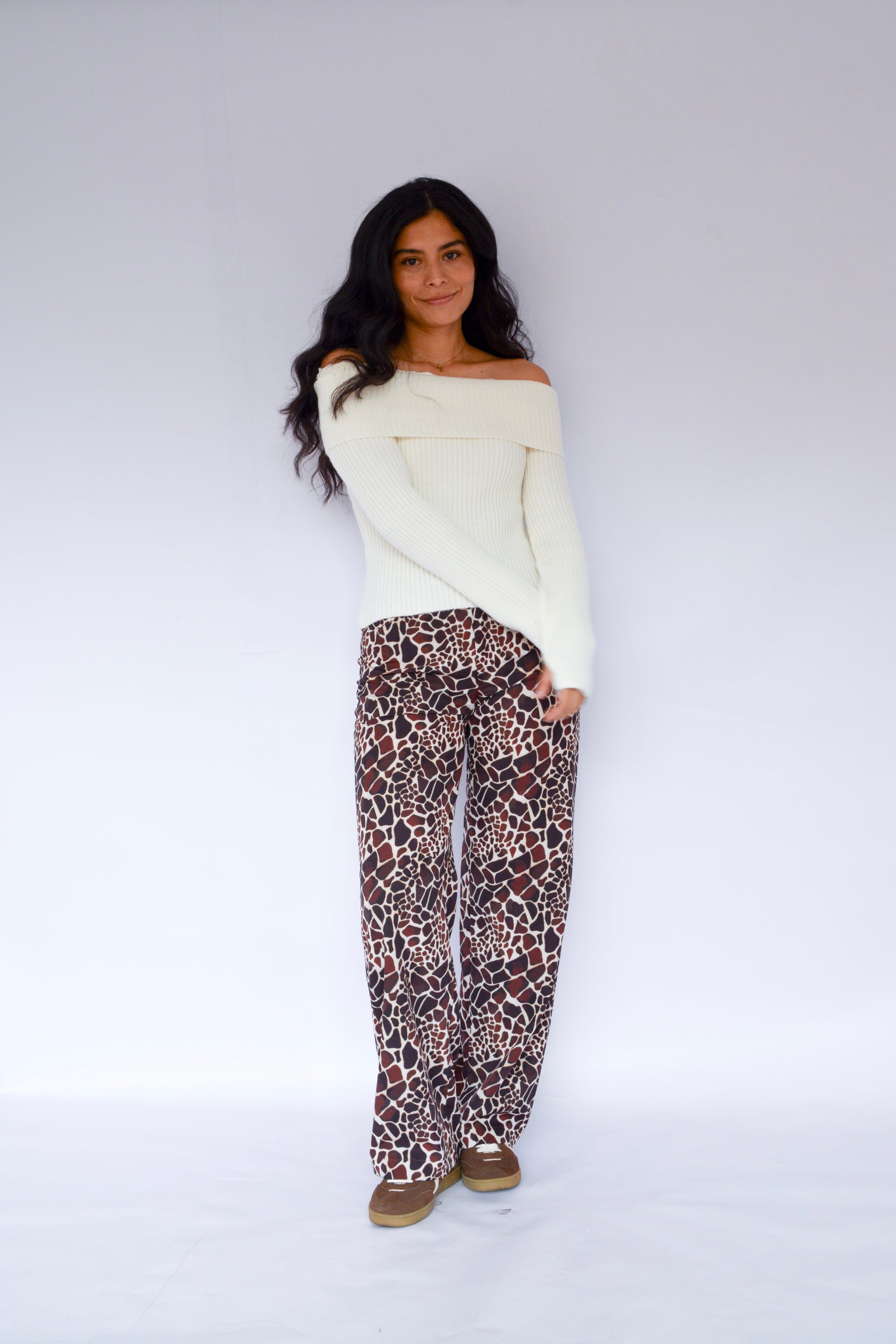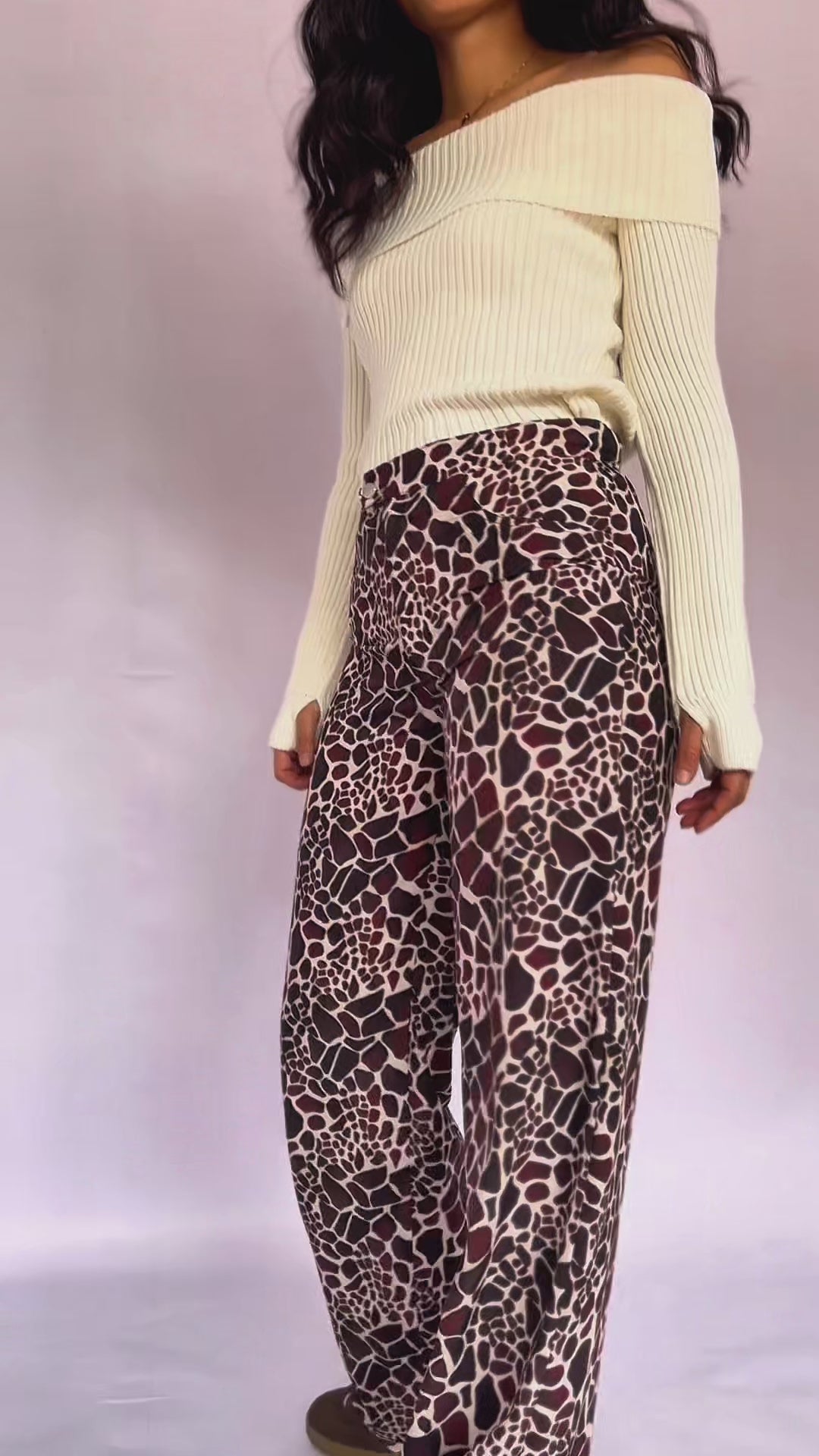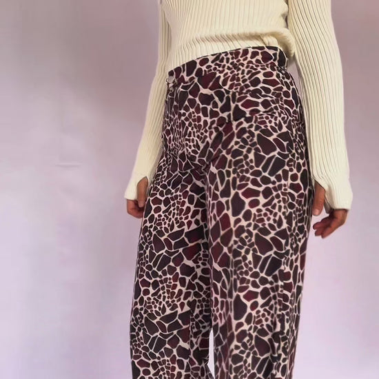 Pantalón confeccionado en seda de alta calidad con estampado de cocodrilo. Su tela fluida proporciona un movimiento elegante mientras que su horma cómoda y femenina se adapta perfectamente al cuerpo. Tipo de pantalón wide leg con cremallera y broche en la pretina, complementado con bolsillos posteriores funcionales. Versátil para diferentes condiciones climáticas y ocasiones, desde eventos casuales hasta compromisos más formales